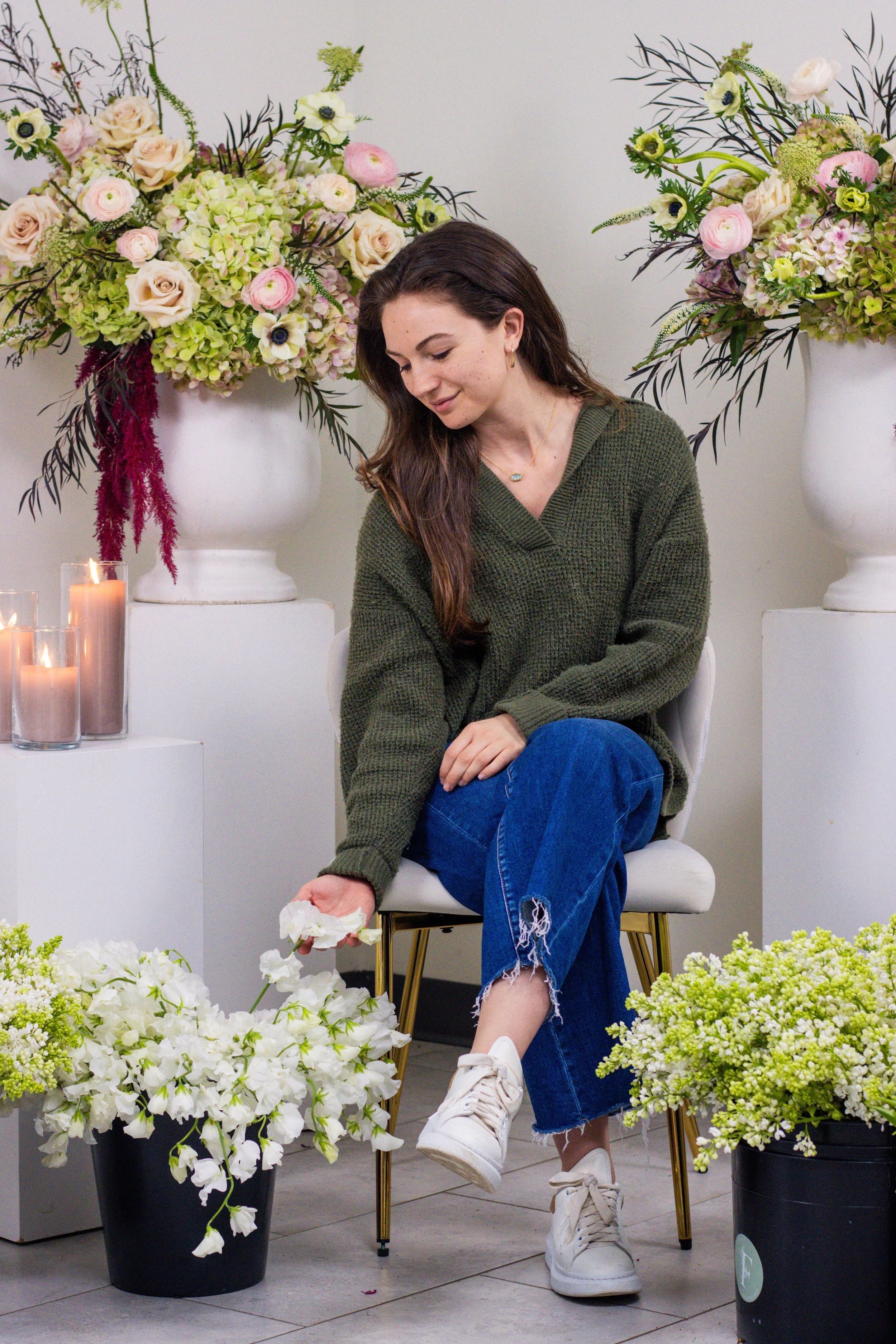Owner and Lead Designer I fell in love with flowers growing up, and I started Flora as a way to hopefully share my love for these beautiful creations with as many people as possible. When I was a kid, my mom would take me to the grocery store where I would sit there and just stare at all the flowers in the Floral Department. I was intrigued by how many different colors could even just be on one petal, and I know she got annoyed with me always asking if we could just buy a couple of flowers. When I was in high school, I went to see the movie Valentine's Day where Ashton Kutcher plays the florist.I mean it was Ashton Kutcher so that definitely helped, but seeing the life of a florist on Valentine's Day portrayed in a movie, going to the wholesale market, picking out flowers, selling them to people who want to create a special moment in theirs or someone else's life...I just knew. So, I started working at a florist in high school and continued to work for different florists and event companies throughout college. I’ve trained under florists from all over the world and love constantly learning more about this art. I can’t wait to help bring your vision to life!